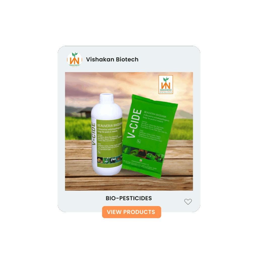 Vishakan Biotech offers biopesticides made from botanical and microbial ingredients that effectively control pests without harming the environment or beneficial insects.